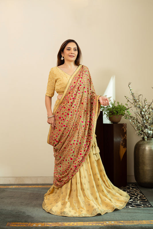 INAYA Beige Yellow Boota Lehenga with Heavy Dupatta
