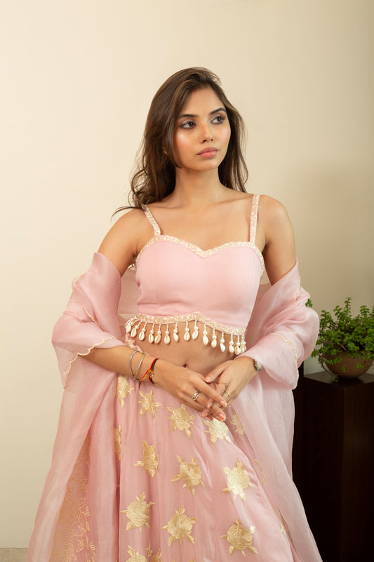 GULBANO Parsi Boota Lehenga in Pastel Pink Colour