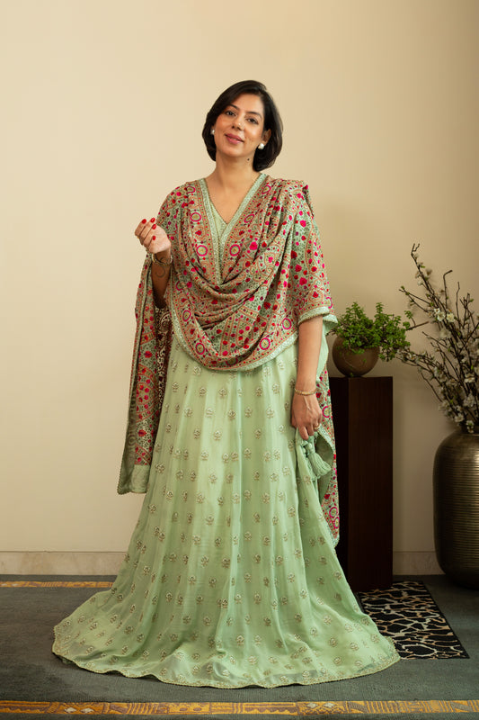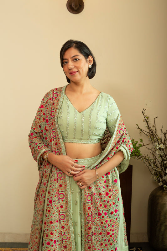 INAYA Sea Green Boota Lehenga with Full Jaal Heavy dupatta