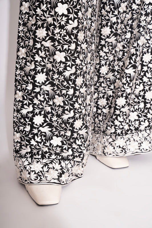 Black Pure Silk Crepe Parsi Embroidered Straight Pant
