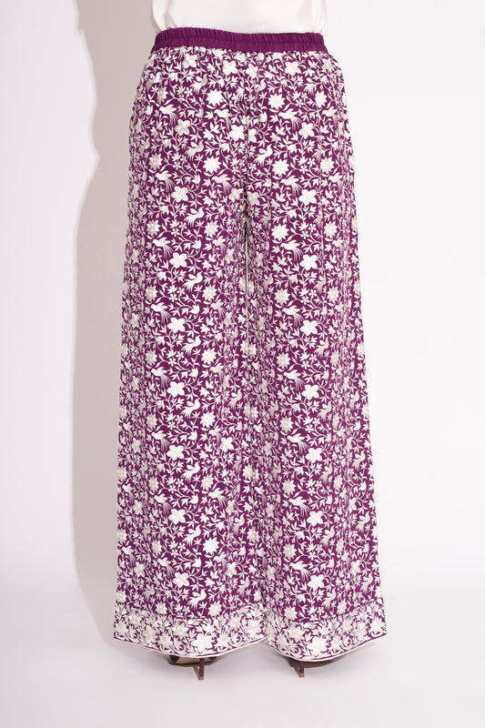 Violet Pure Silk Crepe Parsi Embroidered Straight Pant