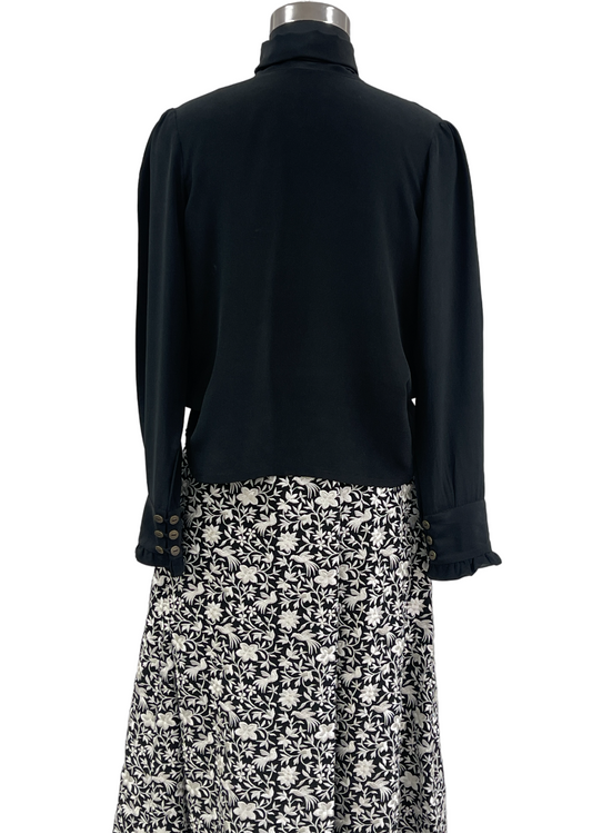 Black Pure Silk Crepe Parsi Embroidered Skirt