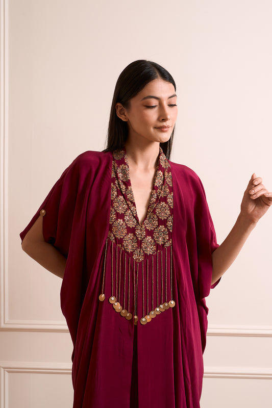 Black Silk Velvet Off Shoulder Embroidered Gown