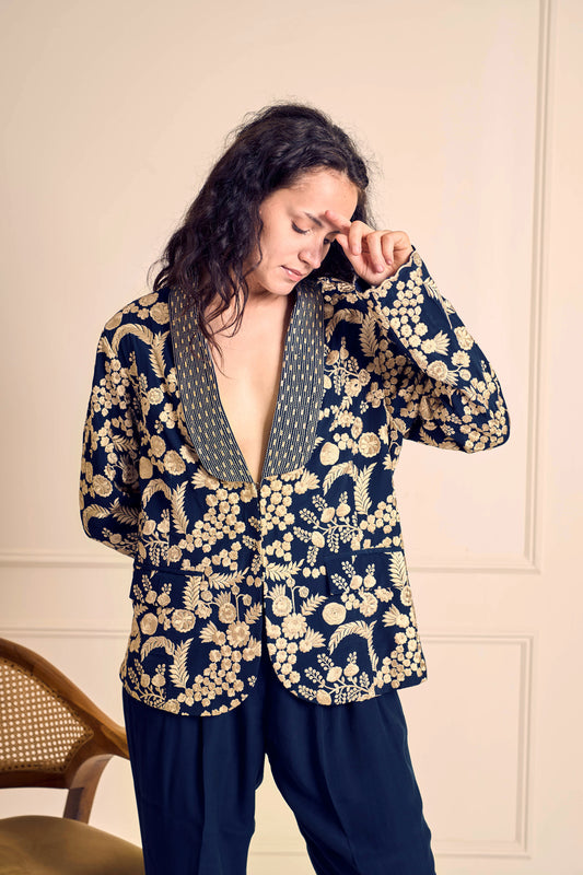 NAAZ Blue Pure silk crepe Embroidered jacket