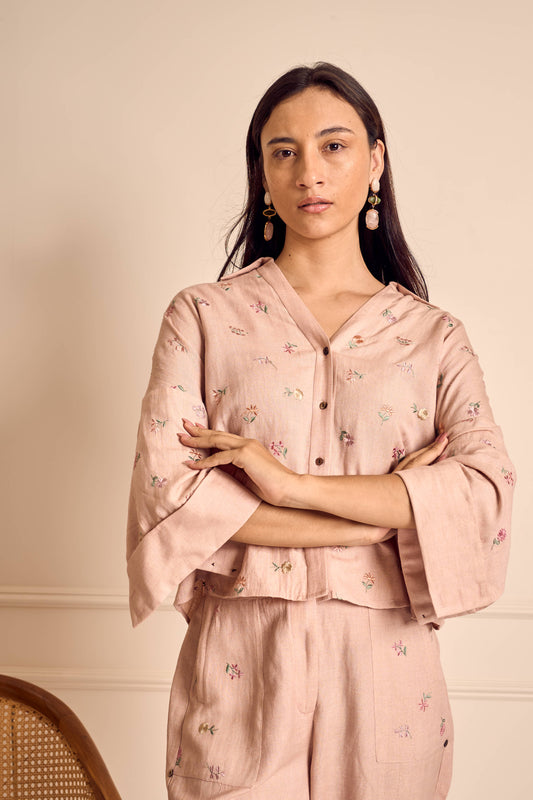 MEADOW MUSE PINK LINEN Ditsy embroidered Shirt