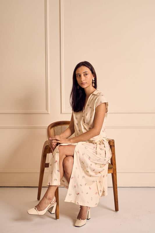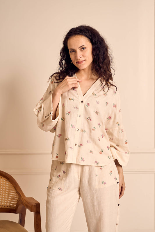 MEADOW MUSE IVORY Ditsy flower Embroidered Coord set in Linen