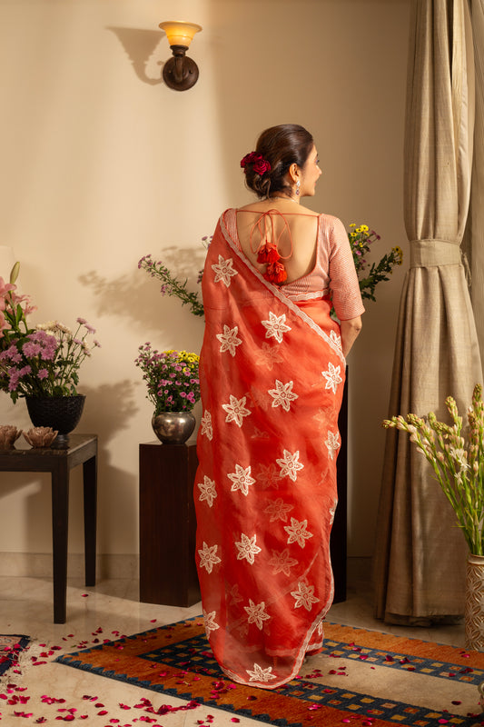 Nargis Burnt Orange Pure Silk Organza Saree Embroidered with Bead Work
