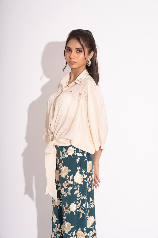 Off White Pure Silk Crepe Bow Tie Top
