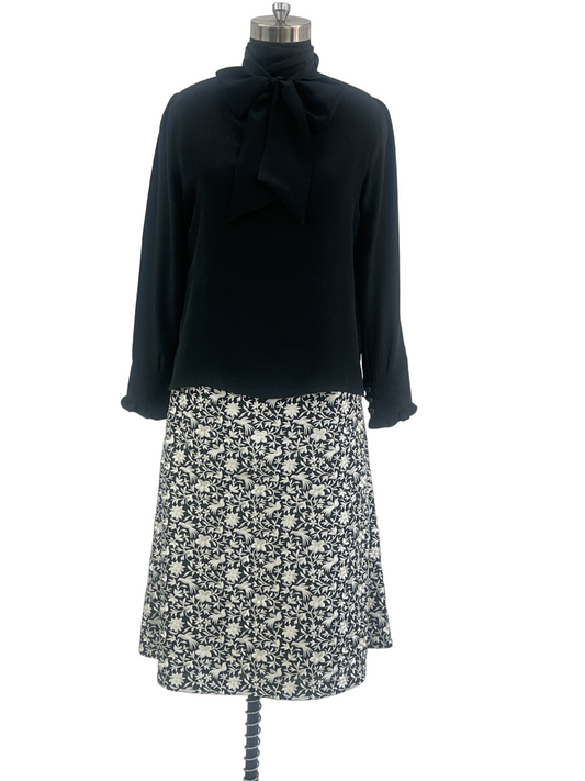 Black Bow Tie Pure Silk Crepe Top