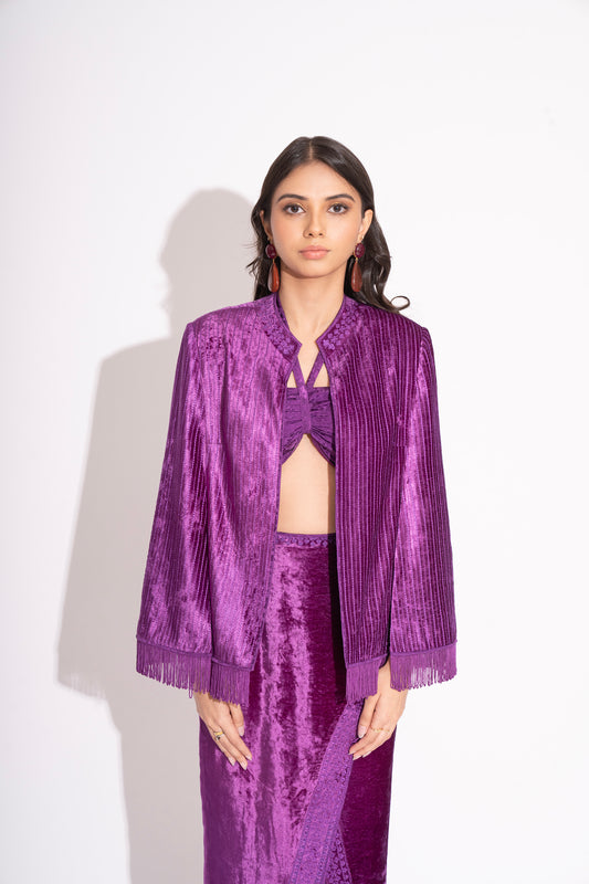 Reversible Violet Makhmal Embroidered Jacket with Pure Silk Crepe