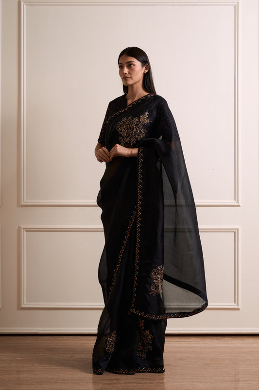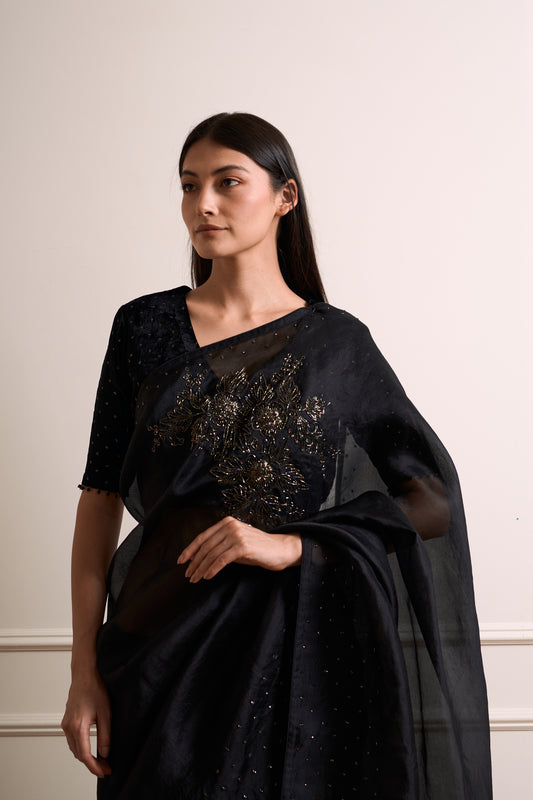 Tulsi Black Organza Metal Detail Saree