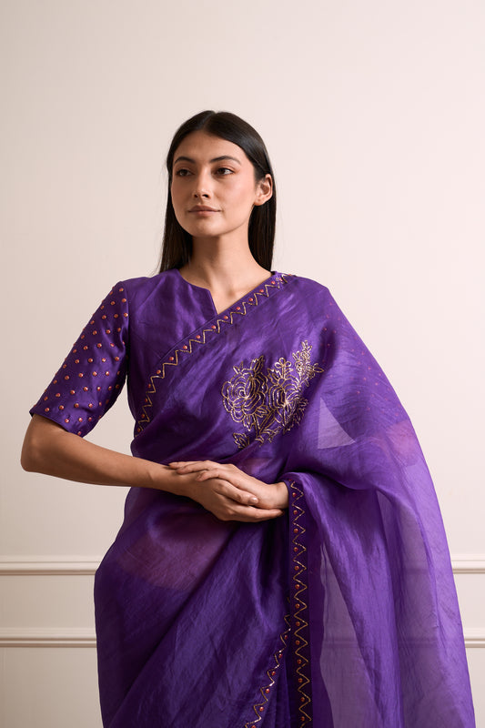 Tulsi Violet Organza Metal Detail Saree