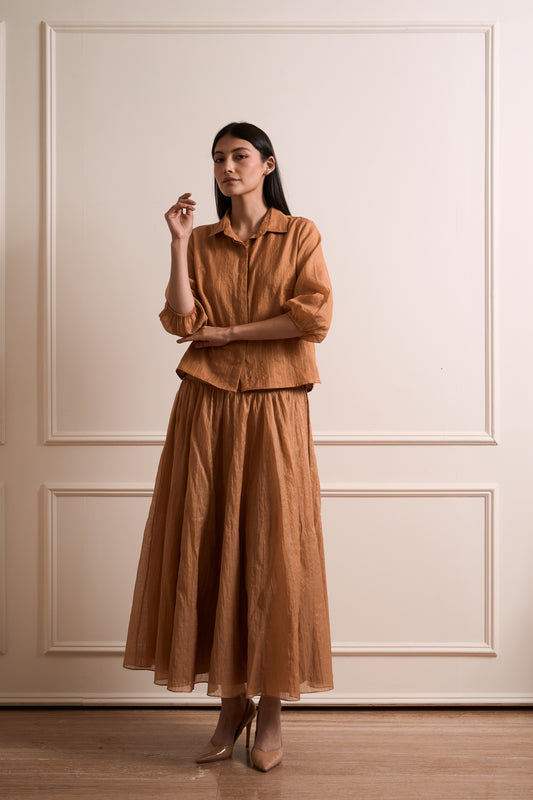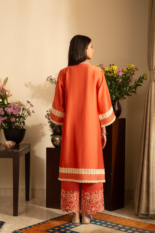Gulbahar Burnt Orange 2 pc Pure Silk Chanderi Coord Set with cutwork Embroidery