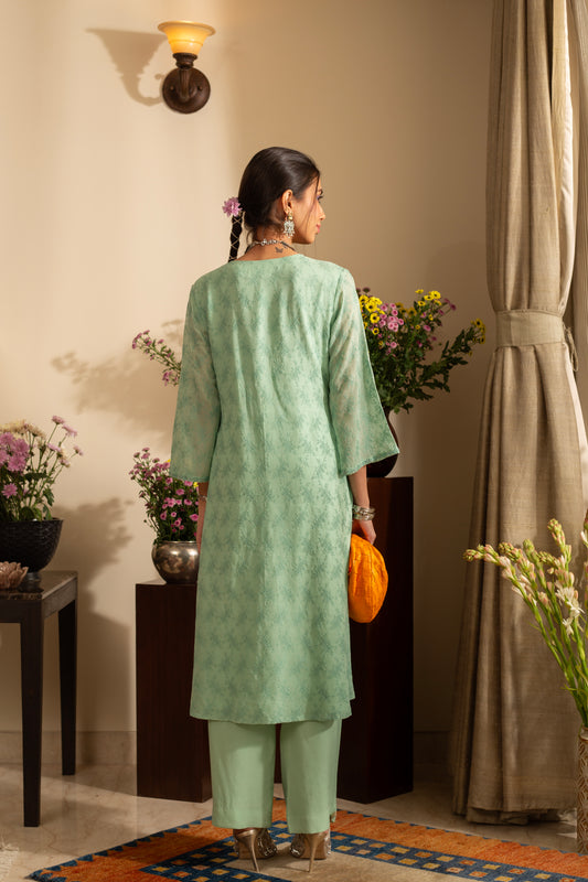 Khus Sea Green Pure Silk Georgette Embroidered 2 Pc Coord Suit Set