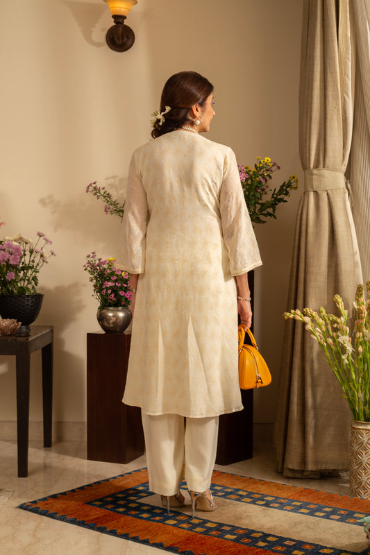 Khus Ivory Pure Silk Georgette Embroidered 2 Pc Coord Suit Set