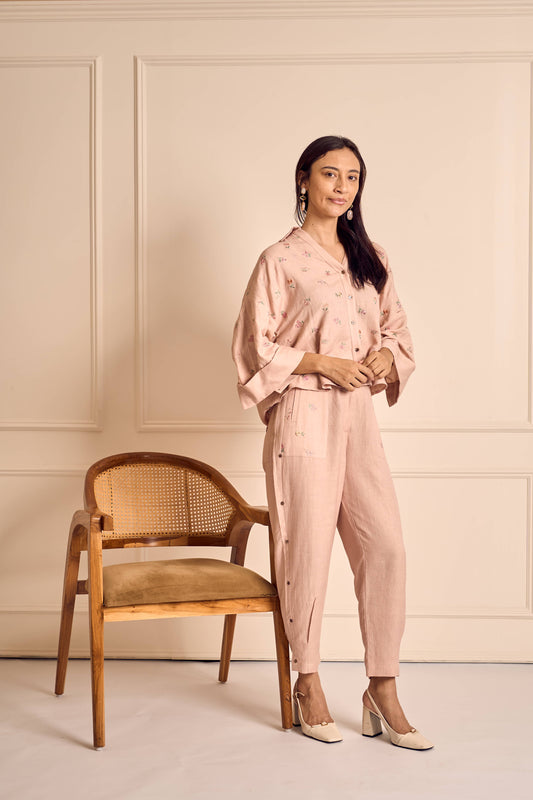 MEADOW MUSE PINK LINEN Ditsy embroidered Coord set