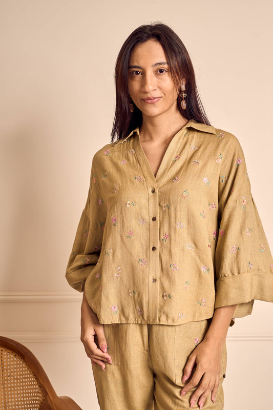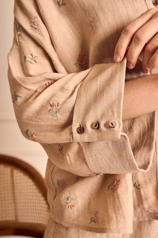 MEADOW MUSE SAGE Ditsy flower embroirdered Coord set in Linen