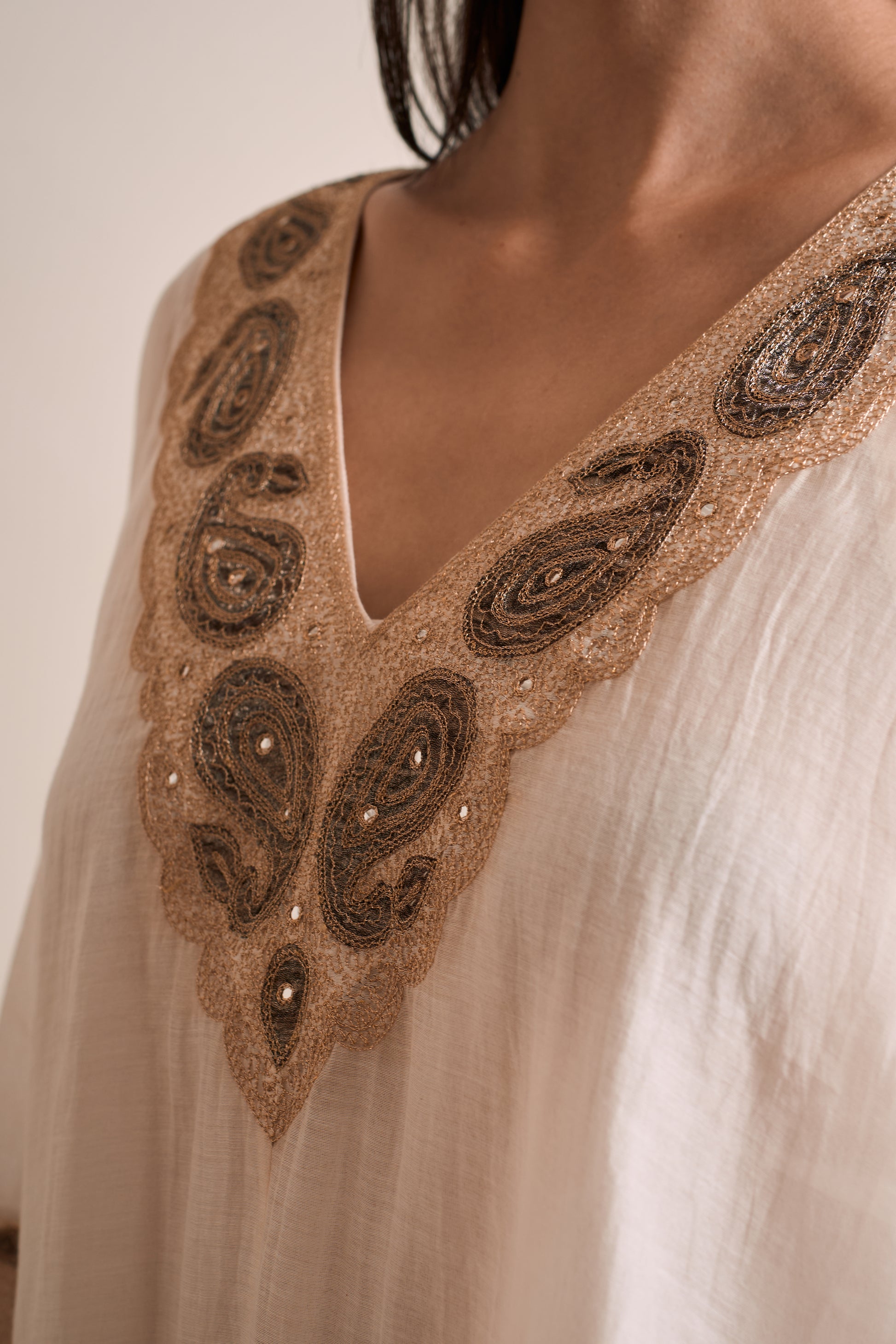 Bela Ivory Malmal Kaftan kurta Set