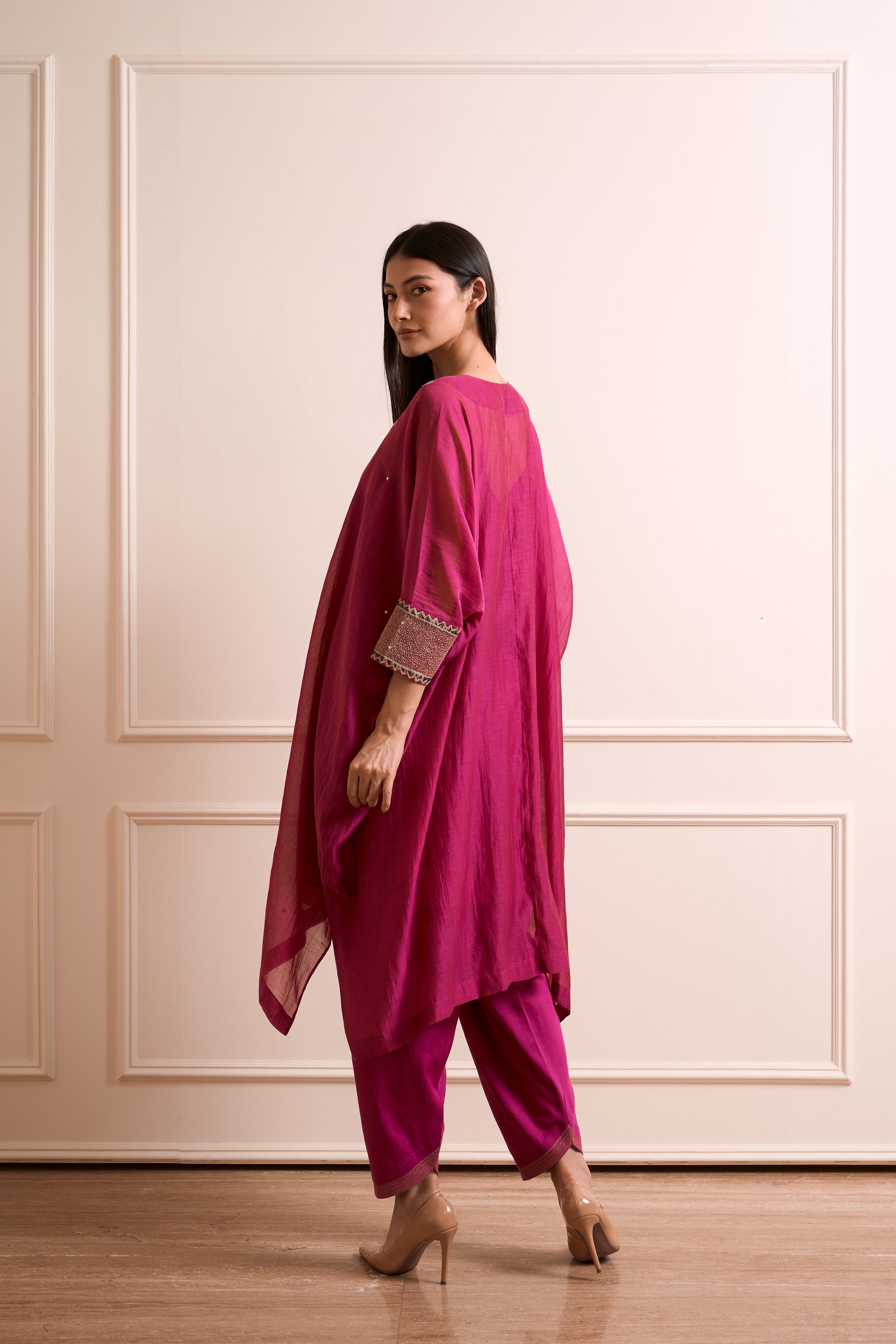 Bela Majenta Malmal Kaftan kurta Set