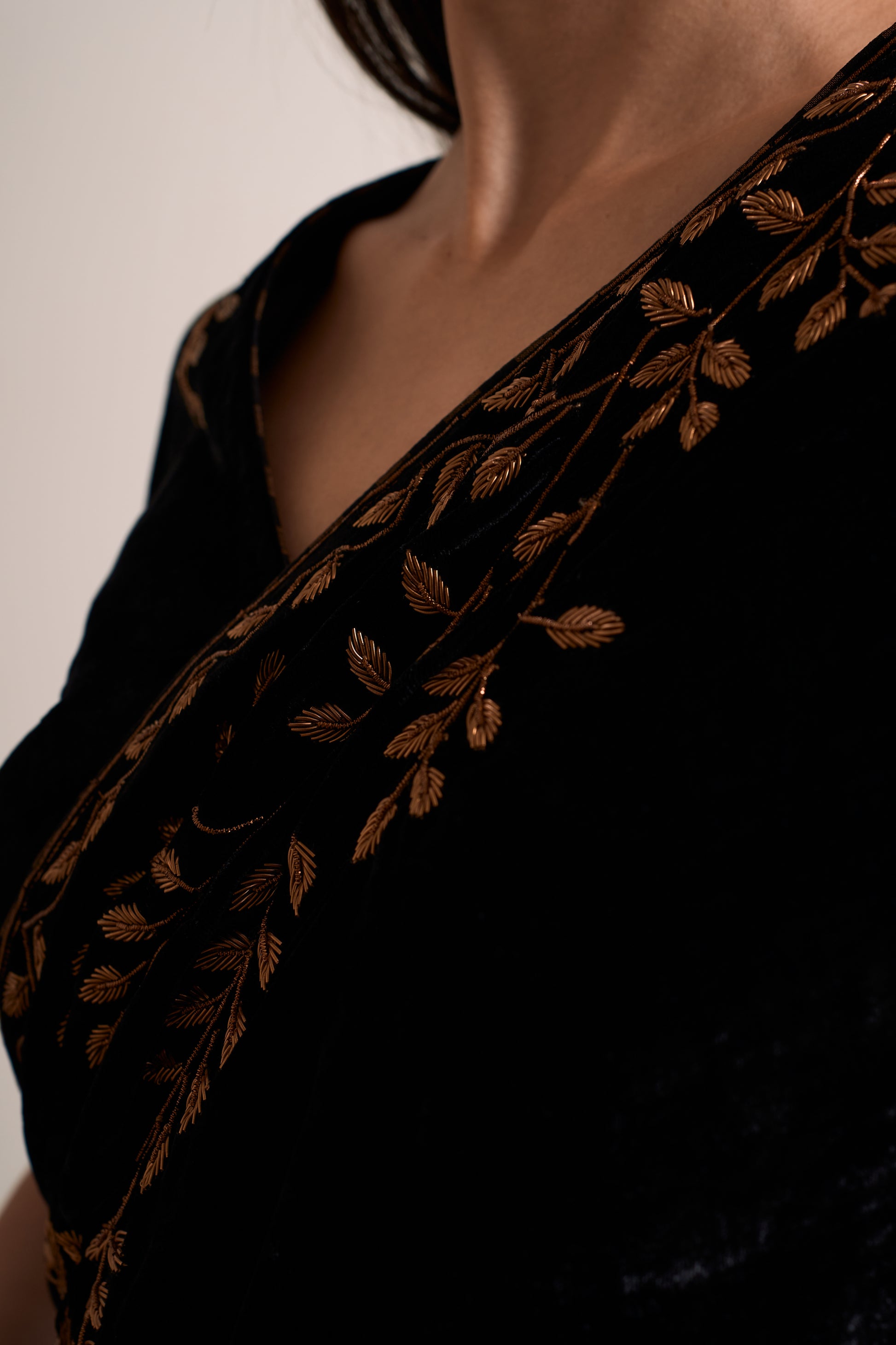 - Saree: Pure Silk Velvet saree with border and placement embroidery