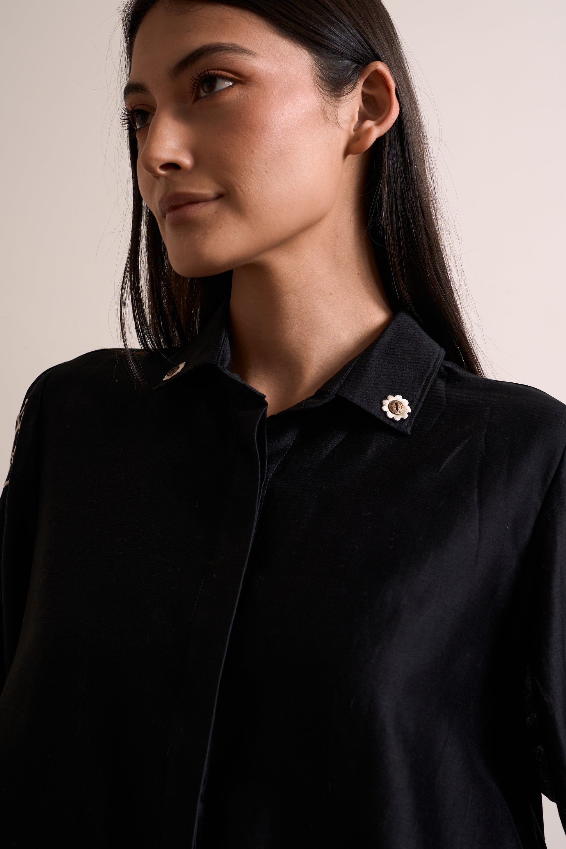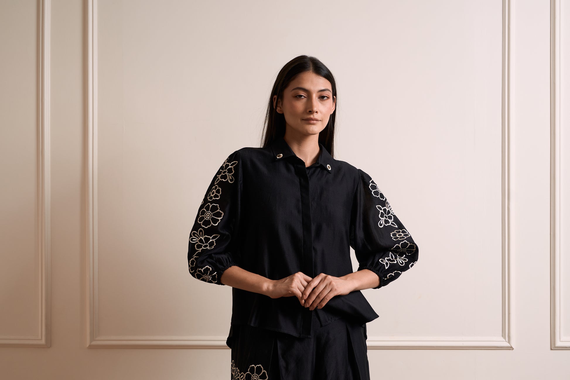 Petunia Black Pure Silk Chanderi Embroidered Indo Western Coord Set